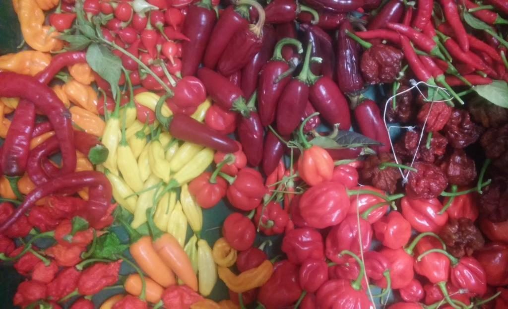 Less tomatoes but still tomatoes, cherry tomatoes, tomatillos, potatoes, lots of carrots, lots of beans, some eggplants, some squash, some cucumbers, onions, the leftover sweet corn, some watermelons, sweet peppers, hot peppers, some cabbage, cilantro and maybe some other herbs.