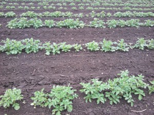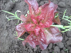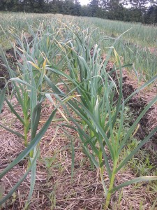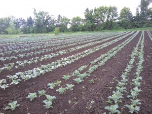 Here is the field with all the broccoli, cabbage, kale, cauliflower, kohlrabi, bok choi and brussels sprouts. If you look really, really, really, really closely you can see the flea beetles (I always want to spell beetles with an “a”).