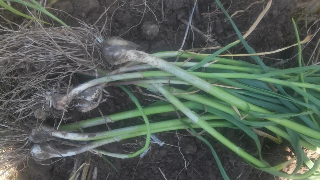 I put out an assignment to our Facebook forum to come up with uses for the green garlic. We got a number of responses including dehydrating it for garlic powder, the always popular favorite pesto and a new to me idea Chinese Scallion Pancakes, also knows as Cong you bing — replacing the scallions with green garlic! Google will help you find a recipe.
