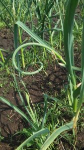 We like to put garlic scapes through the food processor to grind them up then throw in a block of cream cheese to make a delicious spread. Using sour cream instead provides a nice dip! You can also roast them or add them to any dish that needs a nice garlic note. We’ve used them as edible shish kebob spears. The potential uses of garlic scapes are only limited by your imagination. If you have other ideas on how to use scapes please send them my way and I can put them in next week’s newsletter. By the way, garlic scapes store in the fridge for a very long time. The tips and cut end may dehydrate over time but just cut them off and use the rest. We’ve found scapes lost in our fridge that were more than a month old and they still tasted delicious!
