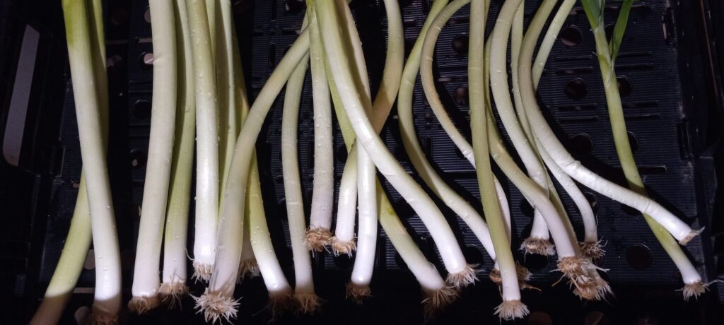 Lots of things! We have potatoes, winter squash, onions, garlic, shallots, leeks, peppers, spicy salad mix (mesclun), kale, bok choy, cabbage, a few carrots, daikon radishes, a few turnips, lemongrass, BS, and some other things I can’t recall.