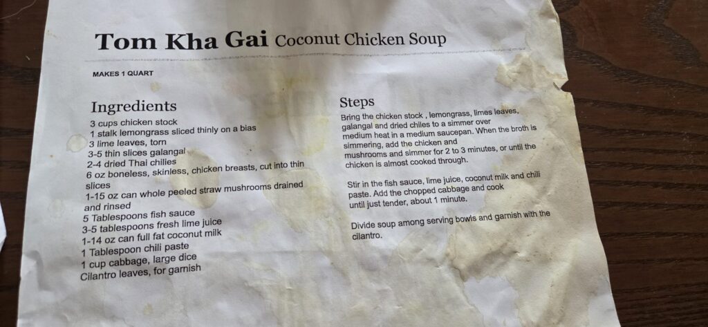 If you are wondering what to do with lemongrass, give this recipe a try. It comes highly recommended from another farm member.
