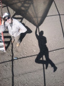 Finally.  We have finished the new hoop house.  It was quite the project fraught with intrigue, peril and danger.  The intrigue was in trying to figure out how to assemble it.  The peril and danger came when we were putting the plastic on the roof.  We tried to pick a calm day but they don’t seem to exist in MN in the spring.  So we picked a calmish day – probably the calmest all this spring!  And still, with a small gust of wind – actually I wouldn’t even call it a gust, more like a puff – Hannah was lifted off the ground by the 4000 sq ft sail.  Rebecca, who was holding the other corner of the roof, felt her arm being ripped from her socket.  At least these two had the sense to keep their feet mostly on the ground.  I, on the other hand, had the brilliant idea of using the hoop structure as an adult jungle gym with arm grasps placed five feet apart.  I climbed on top of the structure and played Spiderman as I scrambled around the 14 foot high structure pulling 150 lbs of unrolled poly.  Not as simple as it sounds.  At one point I realized two things: 1 – there is a reason farming is one of the most dangerous professions, and 2 – I really need to get a picture of this (see below).