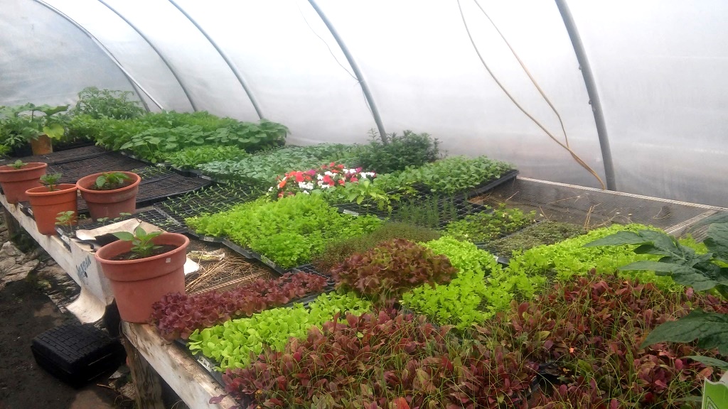 Annual Herb and Vegetable six packs will be available starting Wednesday at 9:00 am. Why then? Because the forecast calls for the overnight temperature tonight around 40 degrees — a bit cool for plants just emerging from the warmth of the greenhouse. By tomorrow night the low temp is back into the 50s. We will put them on a table in the usual pick-up tent location. Go around the circle driveway in a counter-clockwise fashion and you will see them. It is west of the yellow building with the solar panels. No need to be here at 9:00. You can come whenever is convenient for you. The plants will be sitting around waiting for you. Oh, and they are marked with your last name on them.