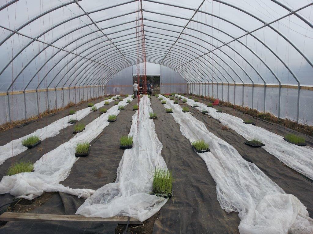 What else have we been working on other than trying to fix the WCS 10000? Well, we’ve been moving plants around quite a bit. We’ve even put a few of them into the ground… in the hoop house. We put in melons and tomatoes with some lettuce between the plants. We came close to transplanting the onions into the field but decided with the cold January weather there’s the potential to lose all the onions (though they are pretty frost tolerant once they are hardened off); we felt it wasn’t worth the risk. The cold weather also prodded us into covering the hoop house plants with a double layer of floating row covers. This should keep them warm enough to survive until the weather control system is repaired.